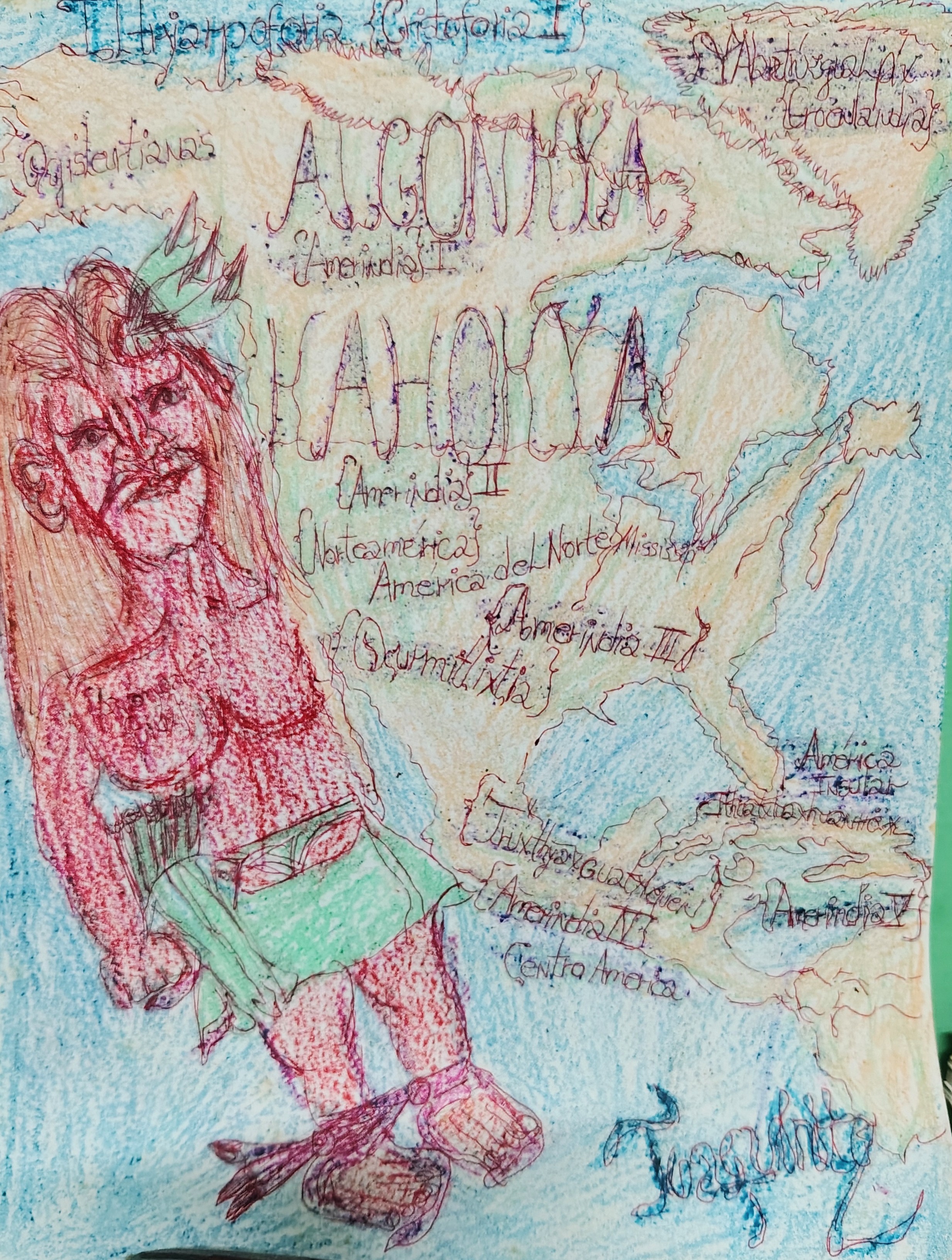 JJJ: Bueno, el soporte que yo cojo para hacer mi obra es mayormente la cartulina, una hoja. Me inspiro en los países árabes que son los preferidos míos y son los que llevo espiritualmente a las obras, los angelinos-marroquíes y del Alto Marruecos. Uso crayolas, bolígrafos, lápices de colores. Uso también pinceles de tintes claroscuros. Uso cartulina pergamínica. Uso todos los materiales referentes al dibujo en el arte.